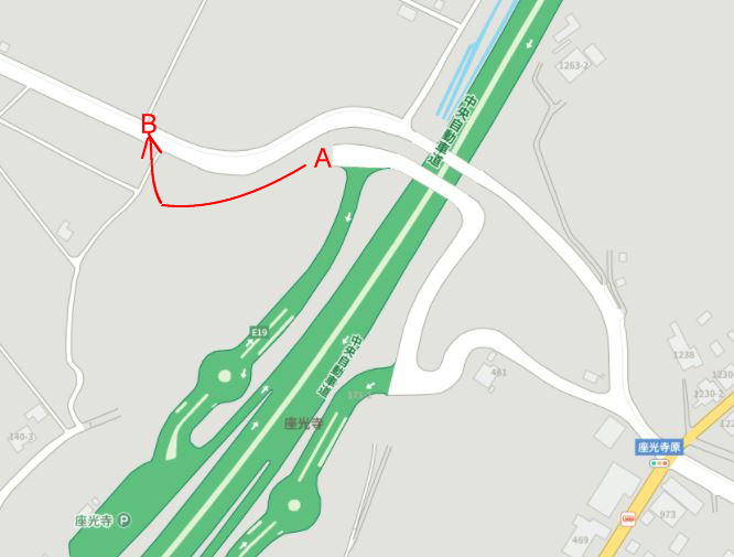 上の地図「B」箇所には(↓)、
