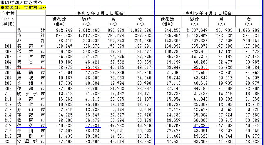 と、飯田市は半年でほぼ千人弱の人口減です。